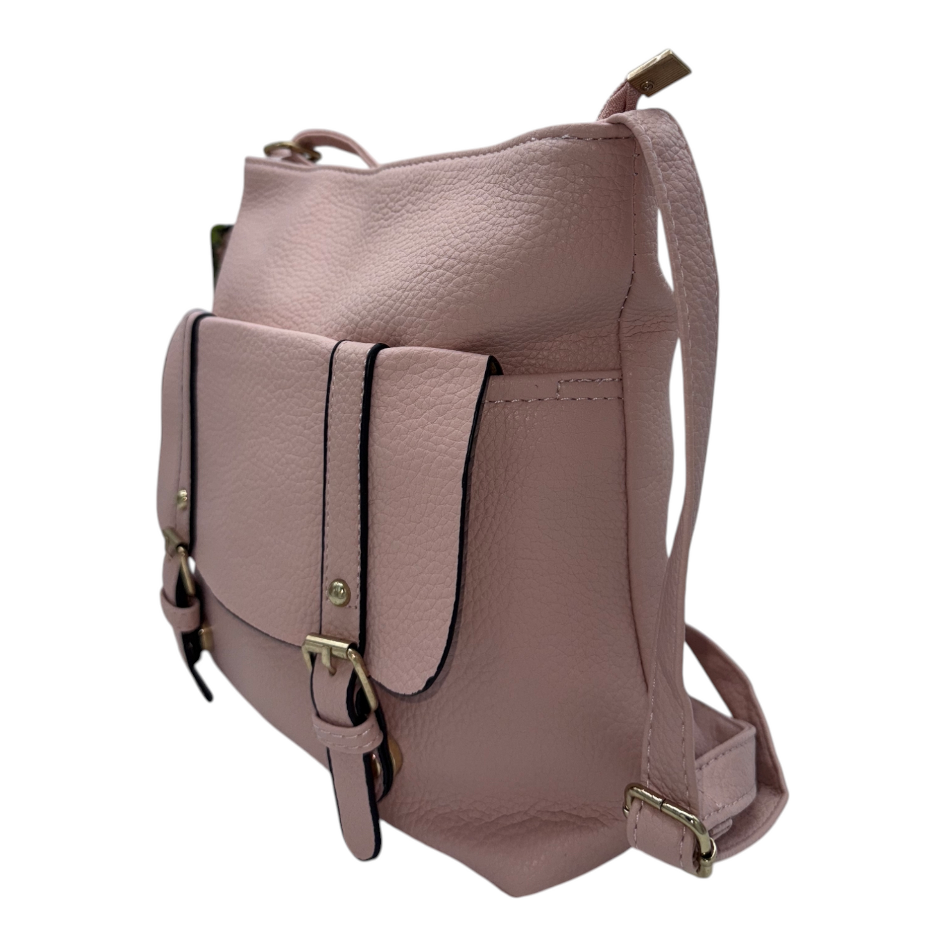 Bolso Bandolera Rosa Nude con Solapa y Bolsillo Frontal | Elegancia Casual y Funcionalidad