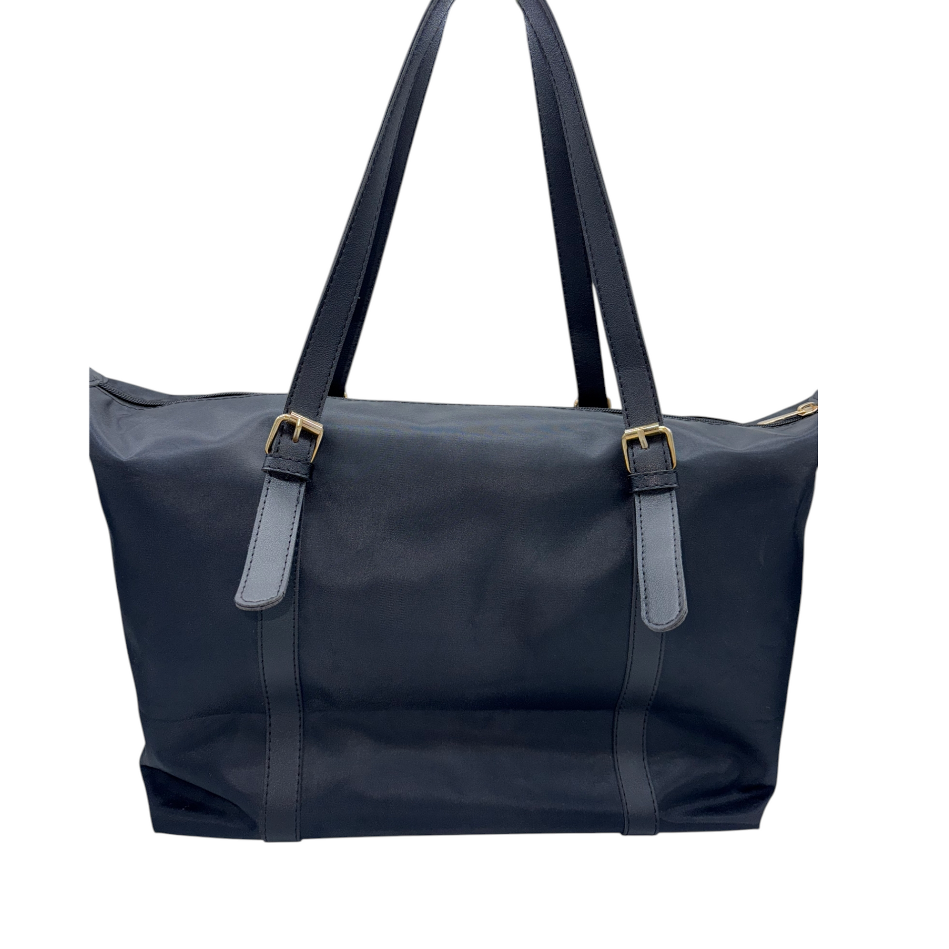 Bolso Tote de Viaje en Nylon Negro con Detalles en Cuero Vegan y Cremallera - Elegancia Funcional