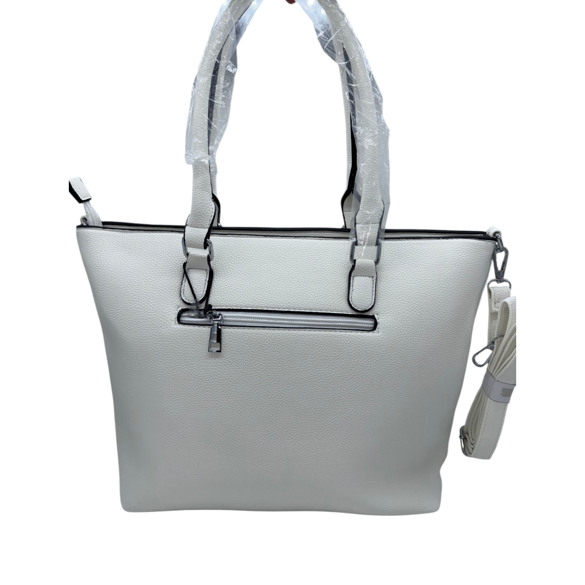 Bolso Tote Grande Blanco con Detalles Metálicos | Elegancia Funcional para el Día a Día
