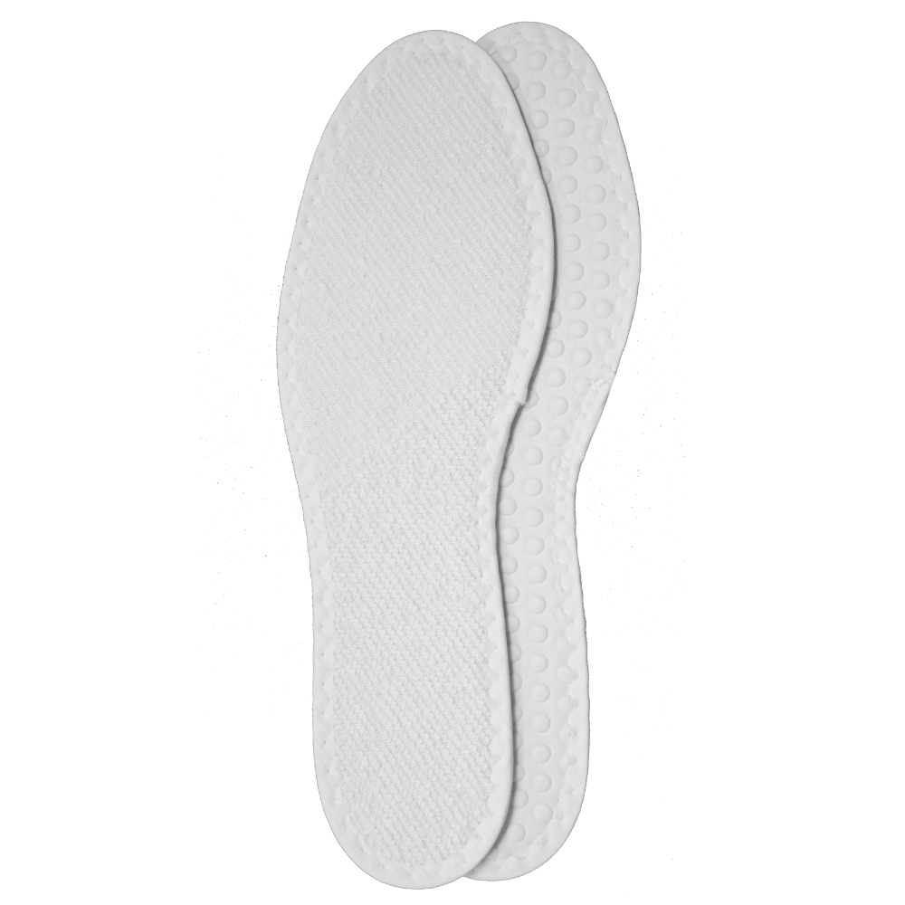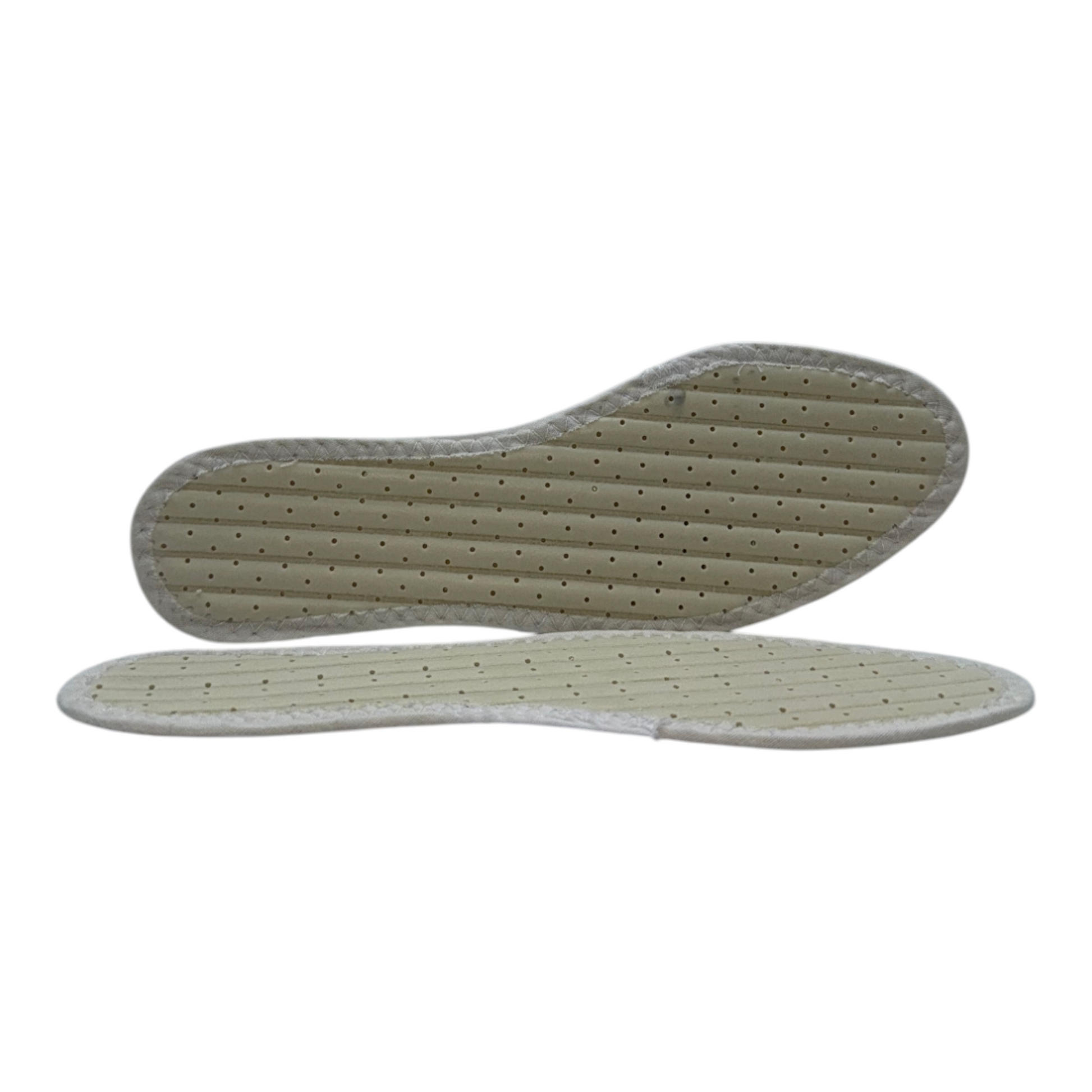 Plantilla Ocean White: frescura, higiene y confort en tu calzado diario. Con algodón 100% natural para mantener el pie seco y látex con carbón activo que neutraliza olores. Su base gofrada antideslizante garantiza ajuste perfecto. Ideal para uso cotidiano, disponible en tallas completas.